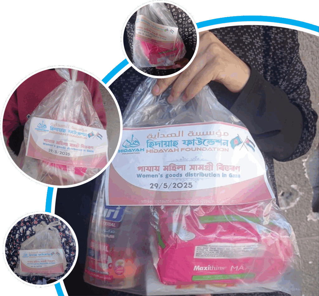 গাযার অসহায় নারীদের স্বাস্থ্য ও দৈনন্দিন প্রয়োজন মেটাতে হিদায়াহ ফাউন্ডেশন জরুরি মহিলা সামগ্রী বিতরণ করছে, যাতে তারা সংকটময় পরিস্থিতিতেও প্রয়োজনীয় সহায়তা পান।